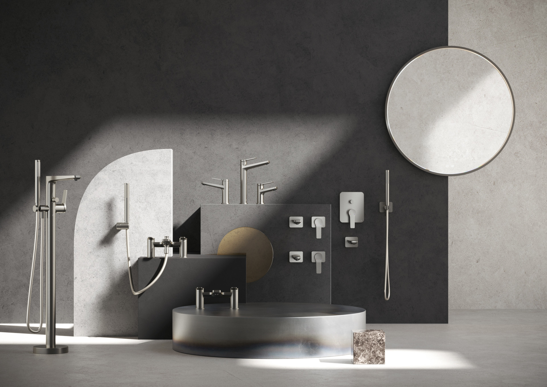 Installed directly into the wall above your basin or bath.
