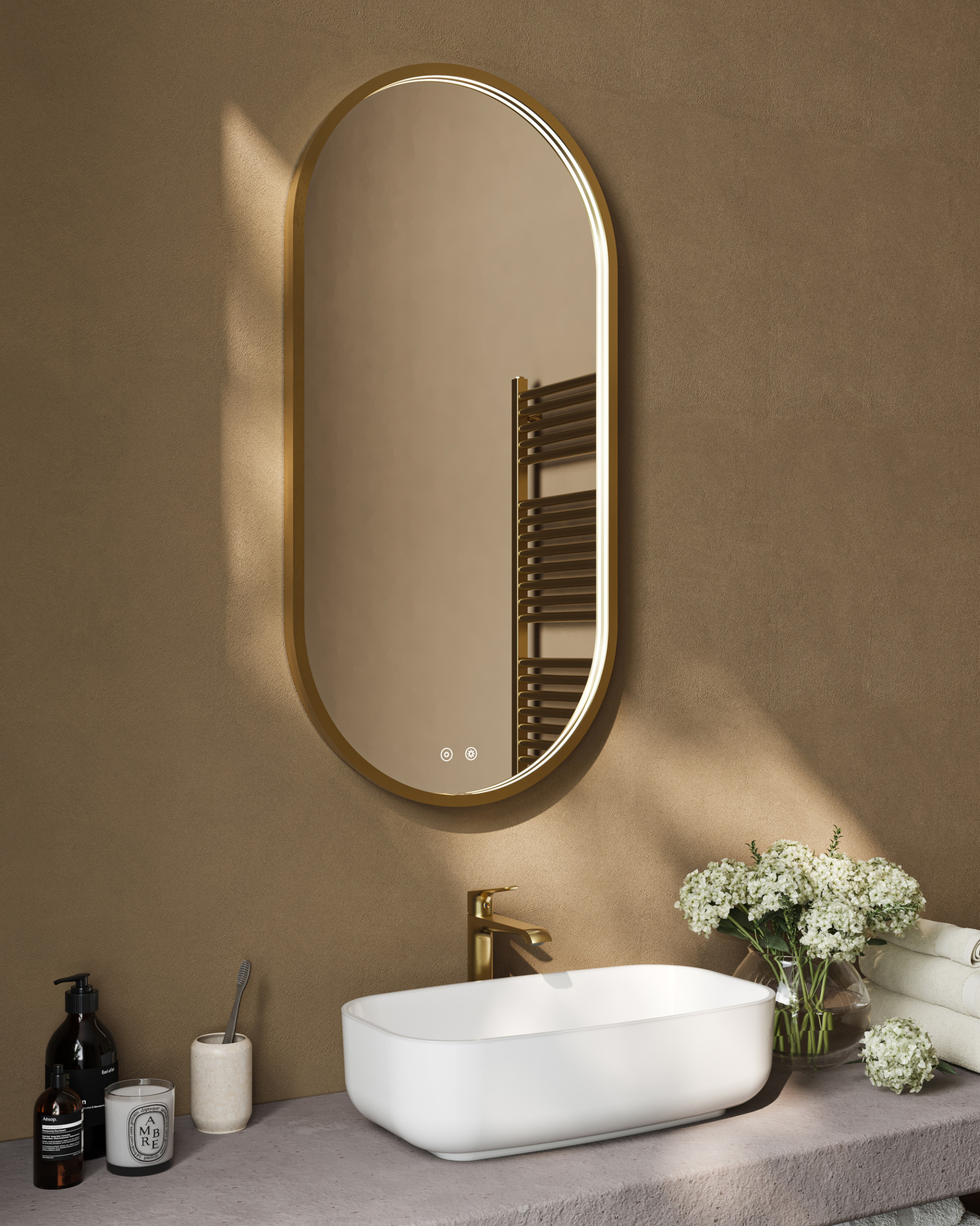 - Add LED mirror lighting for task light and extra reflection.