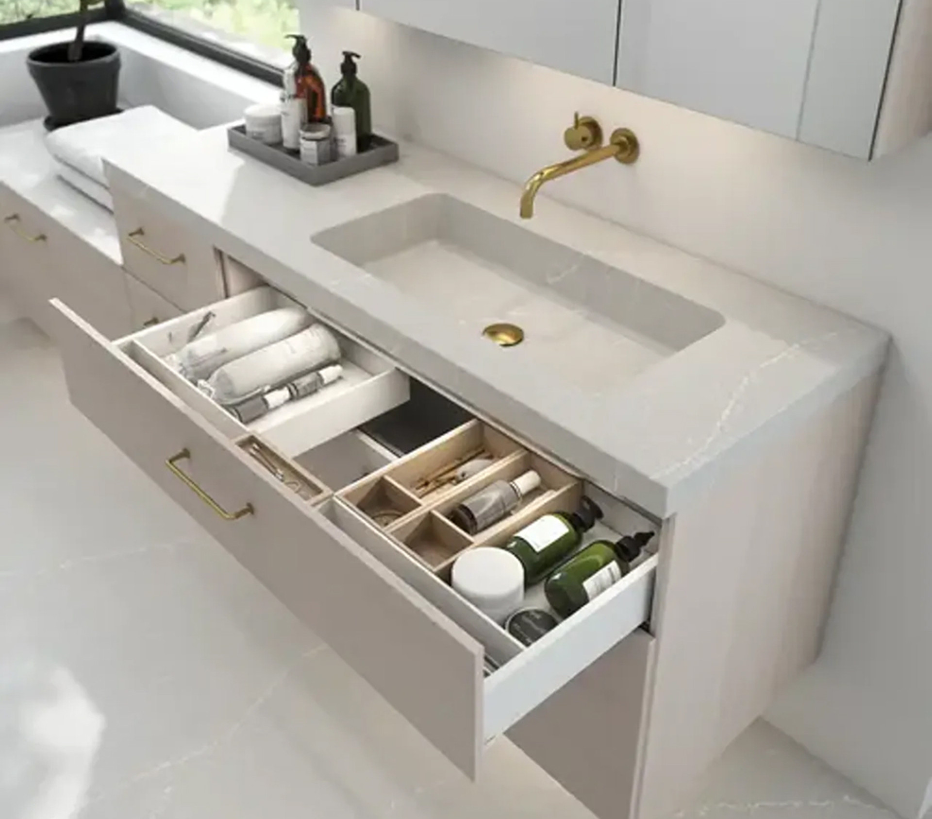 - Drawer organisers utilise the space in basin units and keep them organised