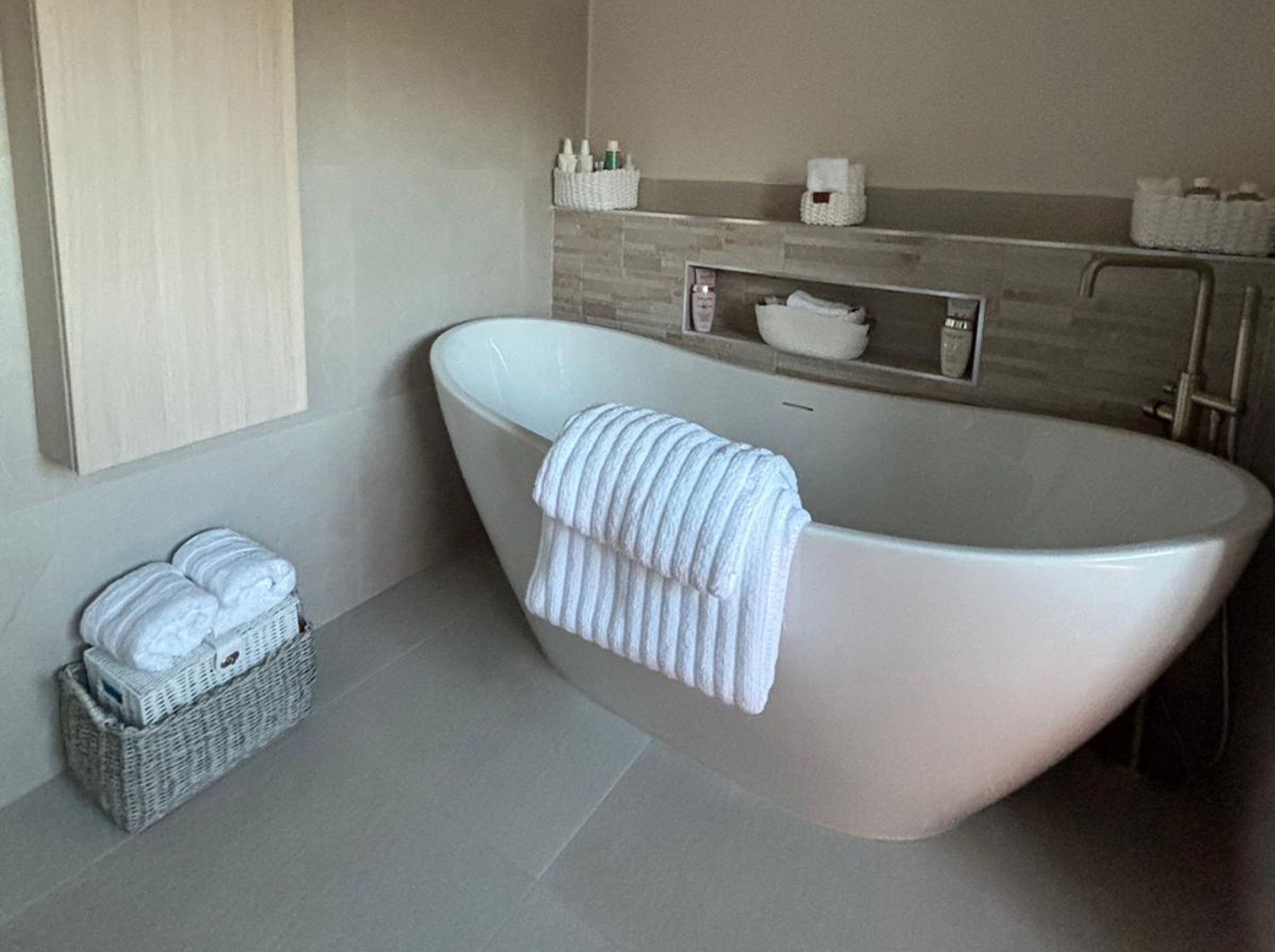 - A freestanding bath for luxurious soaking